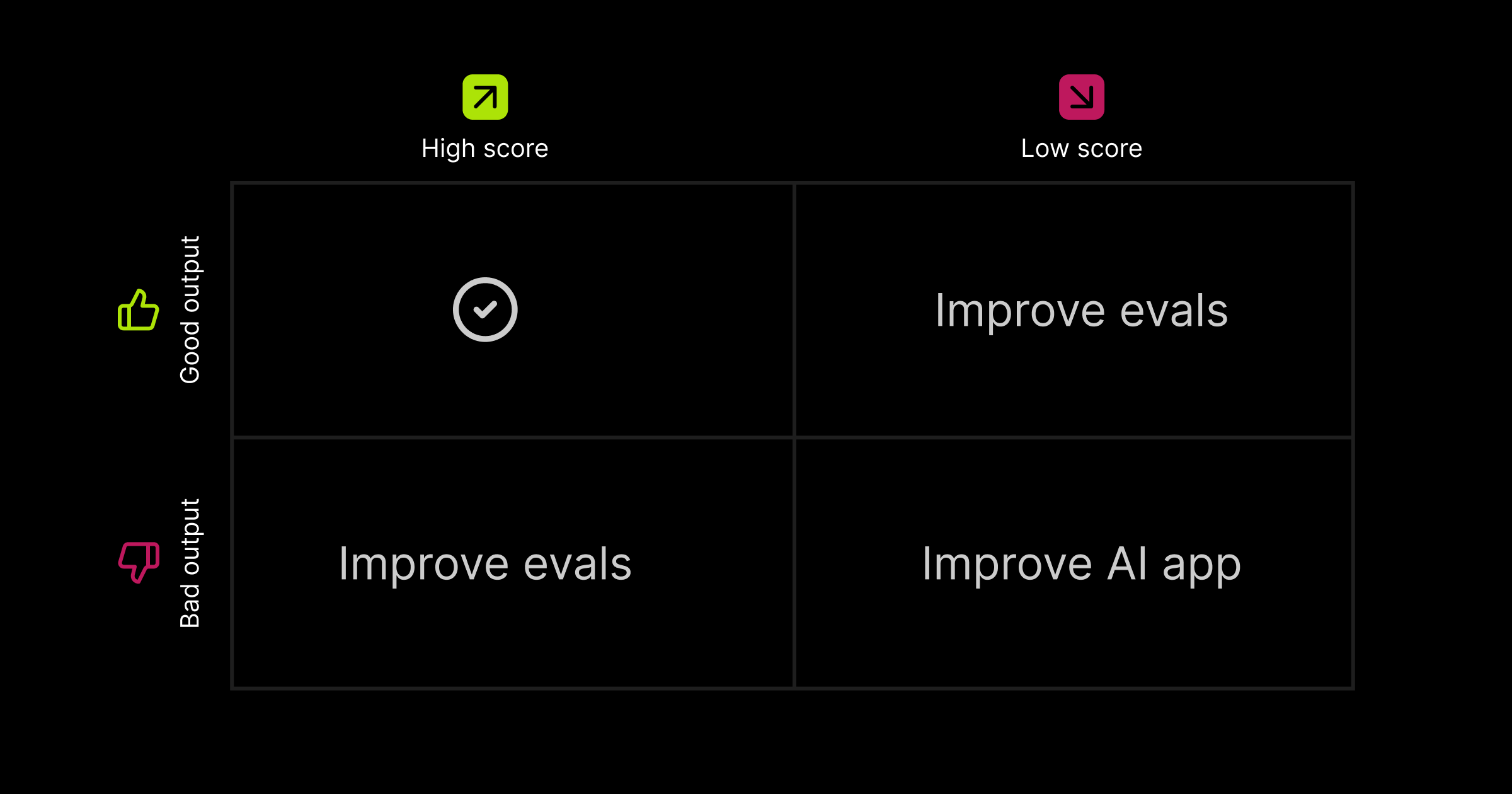 The key here is iteration. Don’t overthink it! In almost all cases, it’s worth spending time improving both your evals and your AI application. Move fast, try things out, inspect the results, and roll back updates if necessary.