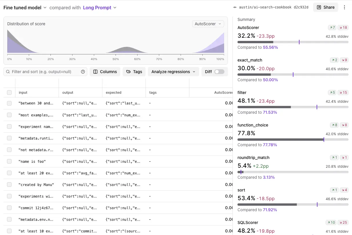 Implementing a good eval feedback loop is incredibly rewarding, but can get unwieldy, even at relatively small scale. Many teams we meet start with json data in their git repo or source code. But they quickly find that it’s a lot of manual effort to keep these files up-to-date with real-world examples, collaborate on them, and visualize the data.
